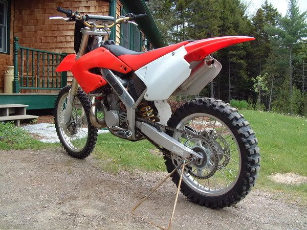 I love the sound of two strokes, very happy with this purchase. I've ridden a friends old XL250 (four stroke) on trails for a long time, this thing is absolutely nuts comparitivly. It feels 10x faster. Scary thing is, I can wheelie it in 5th without having to pull up, it just comes up by itself. No need to describe how first is haha. I did some pretty large jumps over the weekend, I hope to attach some pics tomorrow  :)