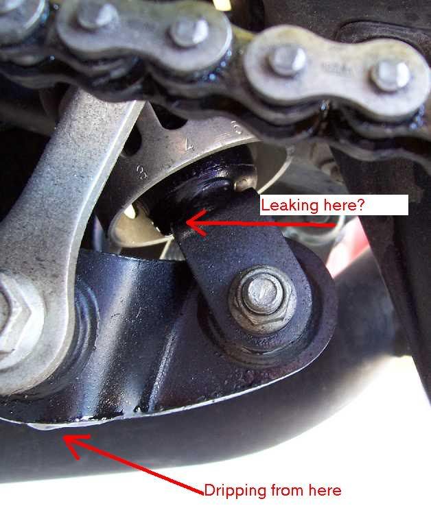 It was yesterday when I first noticed a small puddle under my bike, behind the centrestand.  But I was in a Tim Horton's parking lot, and there was lots of crud in the parking spot.  "It can't possibly be my bike" I say to myself.