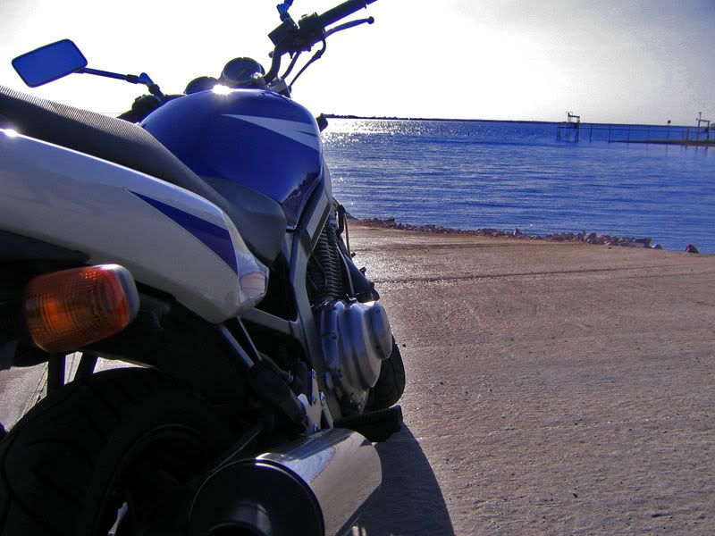 My father and I took a ride today because it was absolutely gorgeous out. Highs in the mid 80s, warm and sunny, with a nice breeze all day long. In late November??  :?  :? We didn't ask why or how, we just rode. He went a bit slower than I liked, but it was fun overall  :lol: . I took these pictures at some lake somewhere in Texas. I forget where. Somewhere off 29, I think.