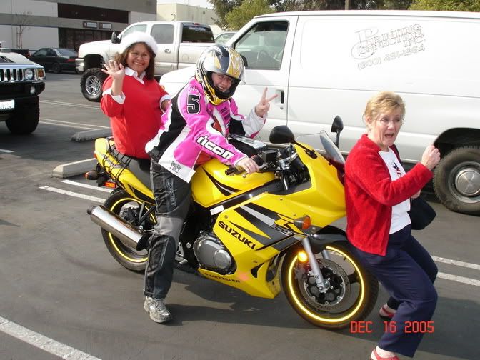 Bunch of us from our small satelitte office took off to go to the "White Elephant Gift Exchange and Potluck" held in our larger, Newport Beach office.  My boss thinks he is so clever and took this pic of me and the 2 admin ladies from our office as we were leaving.  He labeled it "Corona Office Carpool" and fired it off e-mail to everyone in the other office.  When we arrived in Newport Beach, it took us a few minutes to figure out all the bike and carpool jokes directed at us... :roll: