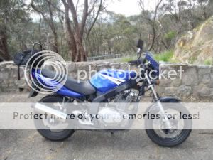 I dropped the bike in gravel in the Snowy Mts a couple of months after buying it :oops: but it just gave me the excuse to paint the bike all black and I have since added a custom sticker set.  O0