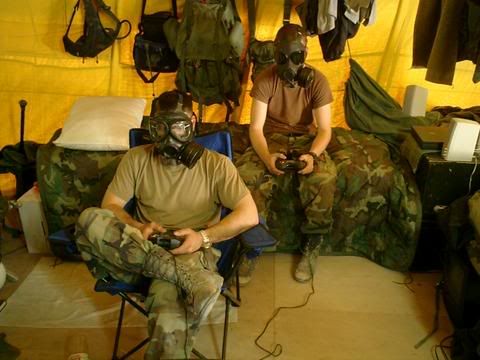 the funny thing is that this is not NBC training we didn't know if it was an actual threat or not.  someone called GAS GAS GAS and we paused the game to put on our masks and started playing again.