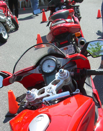 We went on a 20-mile loop.  I went with the 2nd flight (flights left once an hour) and was 3rd in line behind the ride leader until the mid-leader took over and messed up the route.   I ended up having to be the safety bike on a U-turn on a 2-lane road  (Imagine 18 Ducatis all making a U-turn on a side street :-) )  All in all, it was a very tame ride.  I only shifted into 3rd gear once.