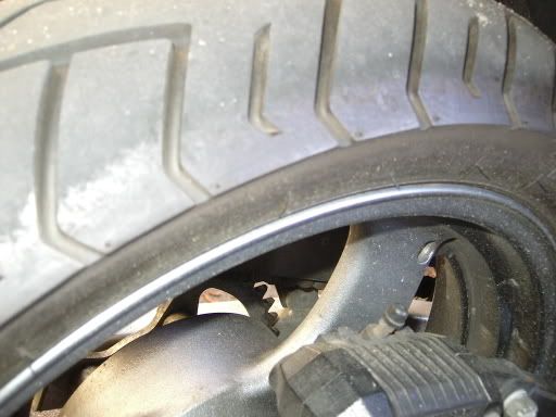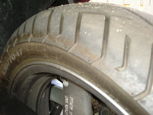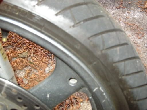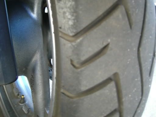 Today was the first day in like a week i went riding. Couple other guys and me went downtown and to the beach it was hot A*% day, I was wish i was a squid so i couldride with flip flops, shorts and a wife beater on. But here are some pics of my tires after the ride.