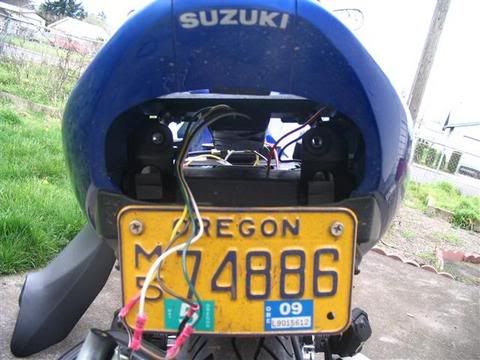 The R6 wiring is simple. There are 3 wires: a black, a blue, and a yellow. Black is (you guessed it) ground, blue is the running lights, and yellow is the brake lights. Easy. And look at my write-up on integrating the taillights in the How-To section for info on what wires are what on the GS: http://gstwins.com/gsboard/index.php?topic=20791.0