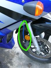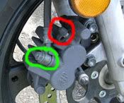 Quote from: Phaedrus on June 03, 2006, 07:08:49 PMI put a green circle around the bolt you want to loosen to remove the front brake line, and a red circle around the bleeder screw.
