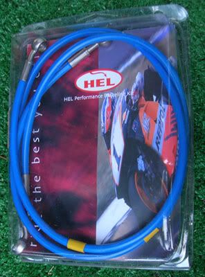 (1 set) Front and rear stainless steel brake lines purchased from Hel Performance USA for $98.00 complete with all hardware and shipping. I got them very quickly too. I chose blue lines, but others colors are also available: