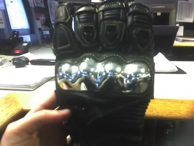 The chrome knuckles aren't mine, but it shows that motocross-type gloves are not your best option for the street.