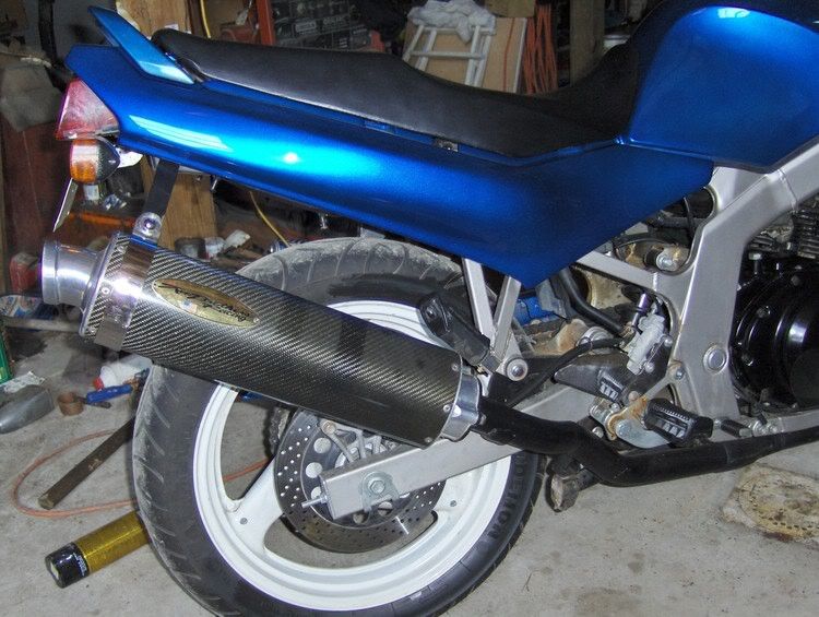05 GS500F Blue: Jardine exhaust, Dynojet, flush mount front markers, back LEDs - still waiting for the Puig windscreen!