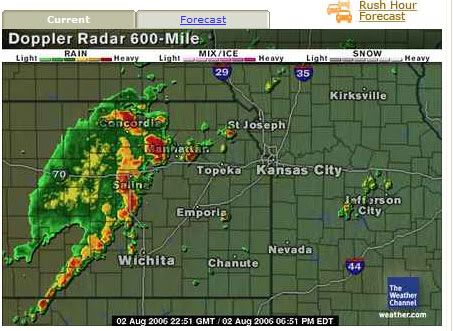 This is the radar from about 15 minutes ago.  My town name is "Manhattan" and is the one you can't read because of the FATASS STORM.