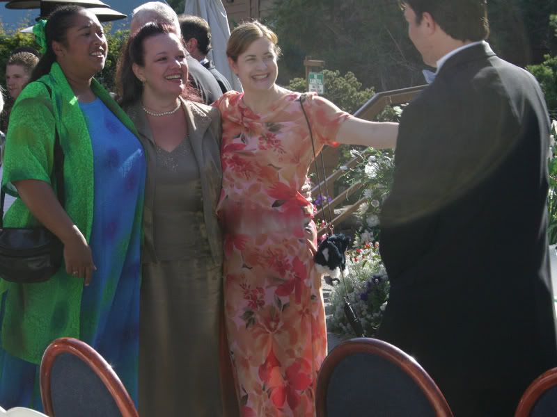 My two best friends (my son's only aunties) in the whole world sandwich me as we wait for my baby's bearhug after the ceremony: