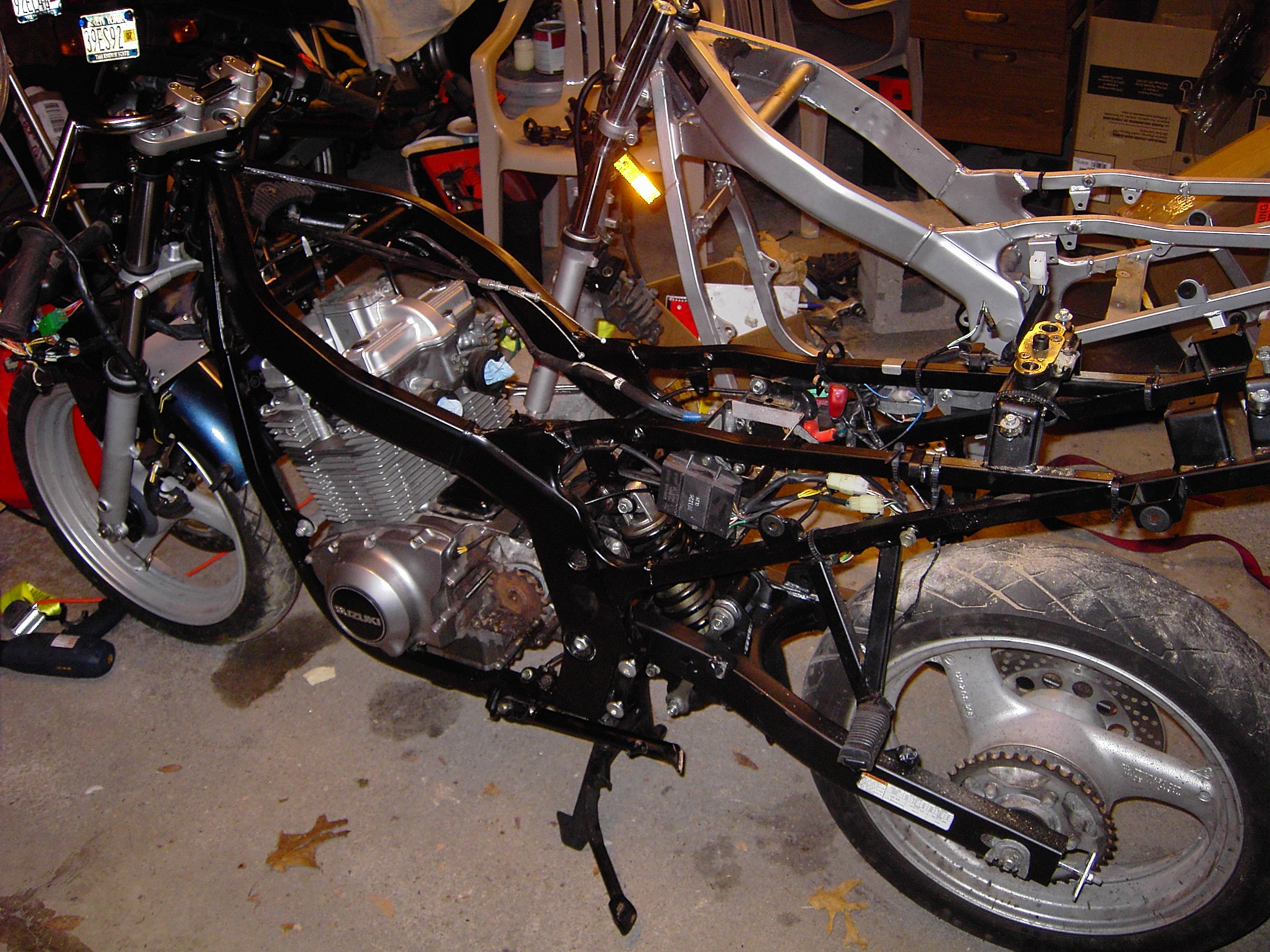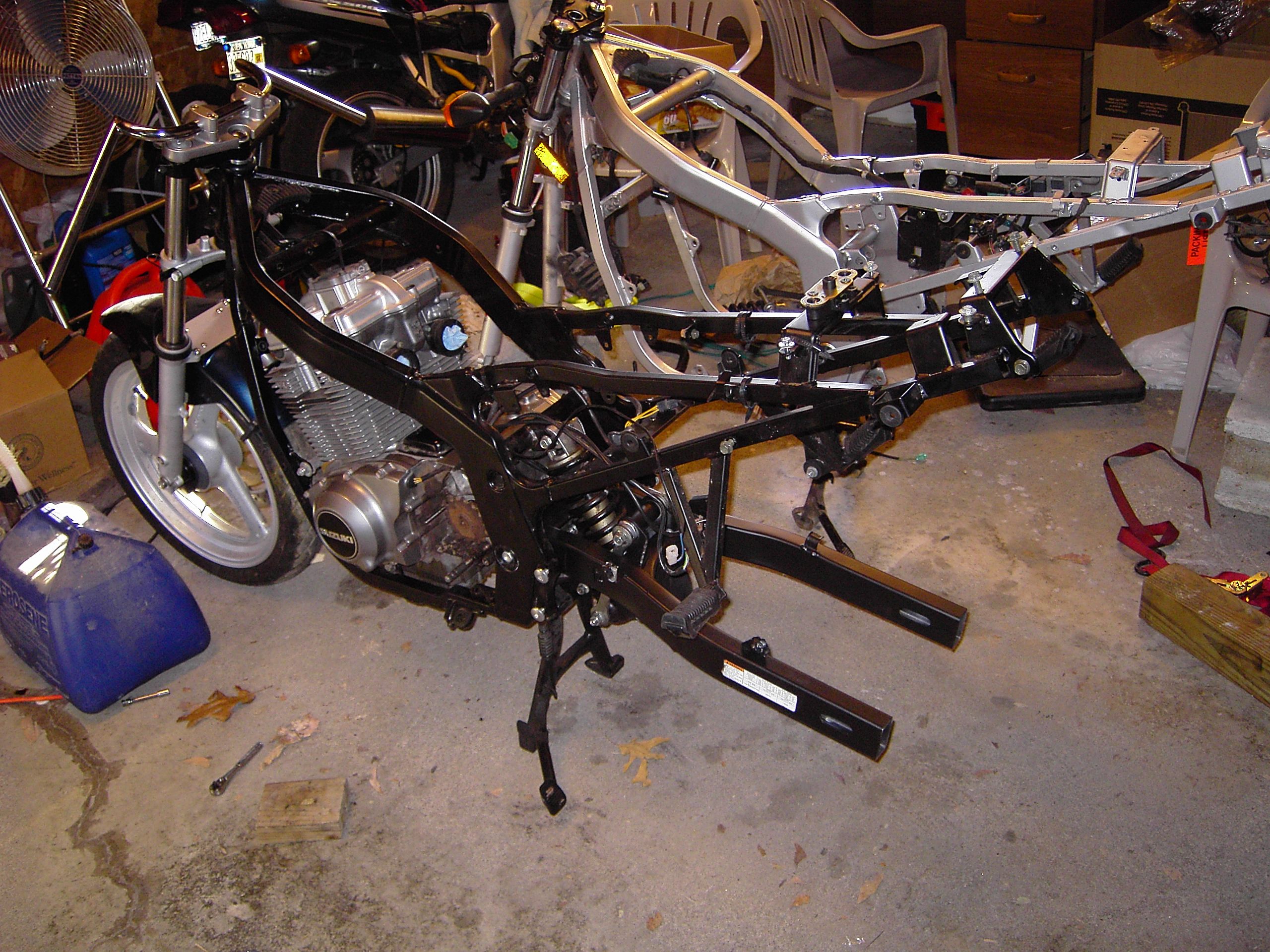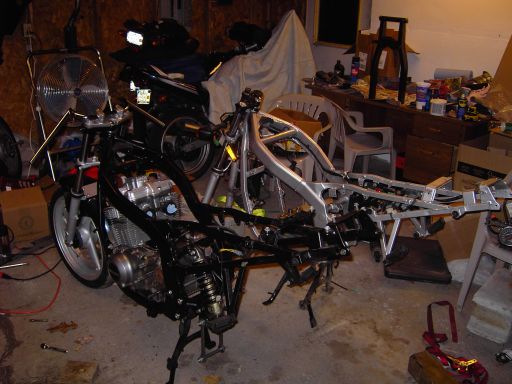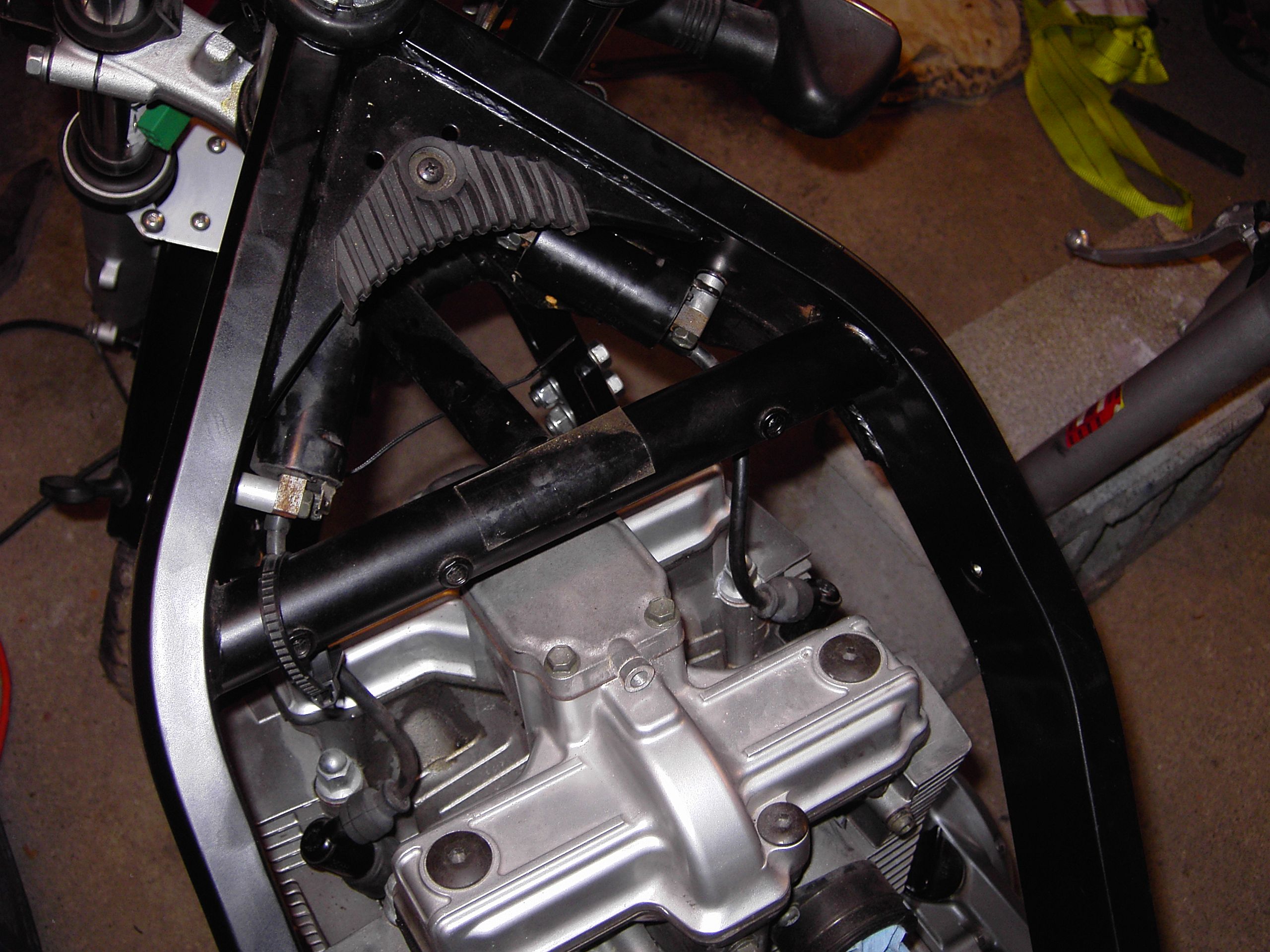 I set the engine sort of angly to prepare to set the new frame down on it.