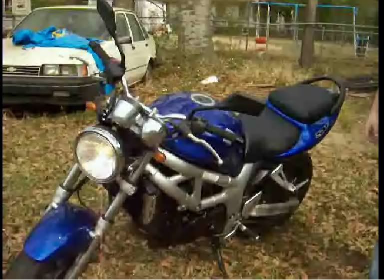 So a former member of GStwin I stayed in touch with is selling a 2000 SV650 with 9k for $2400 picked up or $2475 delivered 2 hrs to New Orleans. It has a bad front fork seal and a inch long tear in the rear set, thats it as far as I know. It has good rubber and comes w/ a Yoshimora (sp) exhaust that sounds amazing in a video clip. What do y'all think? Here are a few stills from a video.