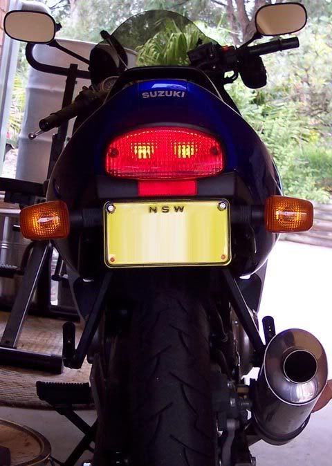 Because of this I decided to add some red LED bolts to my number plate holder, to increase the light output when braking.
