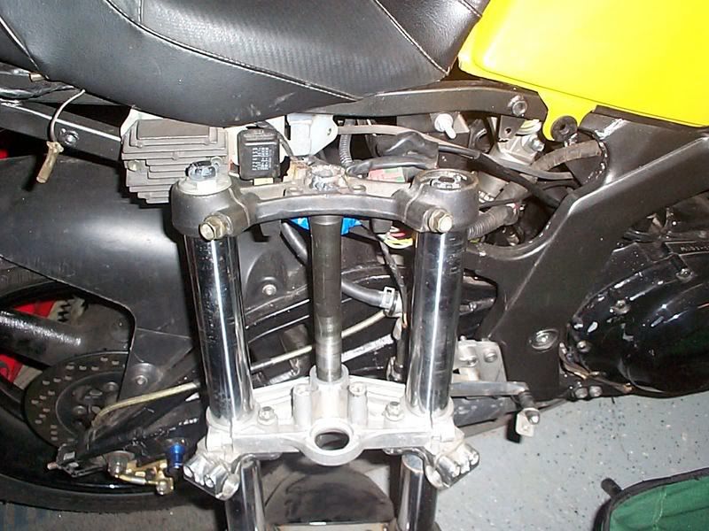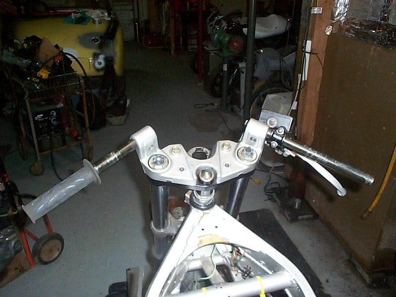 I can just take the risers from my old goldwing and have them welded to the upper triple to mount up my CR250 bars.