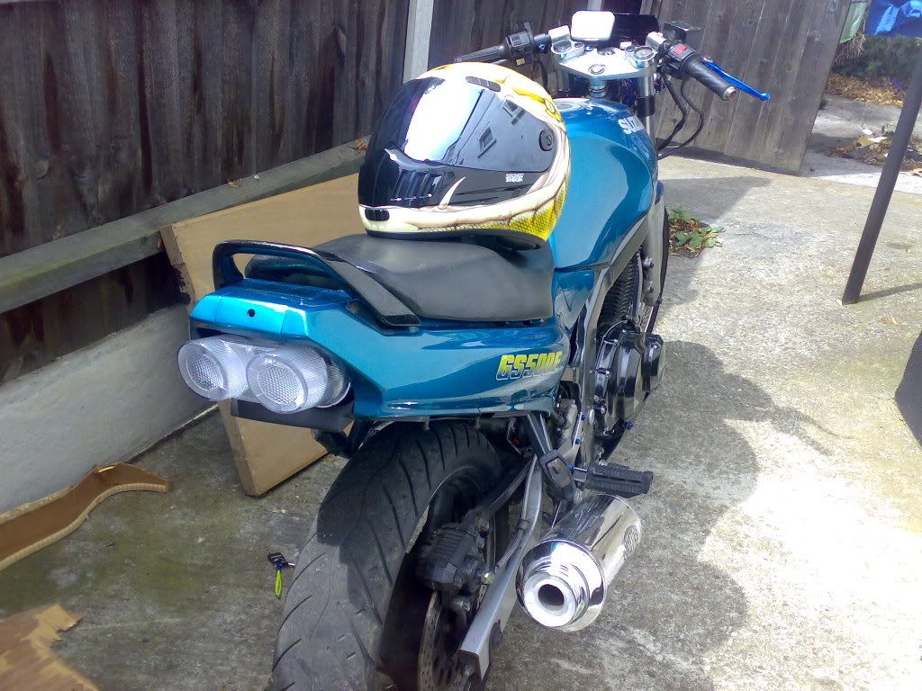 2001 Gs500 , Katana Gsx Front End, K3 Tank,, Full S S Predetor System ,Bandit Rear Hugger,Goodridge S S Break Lines ,  Belly Pan , , K+N LunchBox, Probolt Bolts, FSD Undertray With Built in Lights And Indicators.