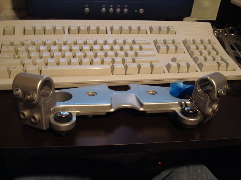 89' Clip-Ons with 2 original bars(one bent) and 2 bars made by myself. Pictures only show the bars made by myself, and as can be seen the bars just need a quick paint job to make them look perfect. The top plate is in good condition and was painted and clear coated about 2 years ago, and was only on my bike for the summer. Its not perfect by any means but I would give it a B+/A- condition of the paint.