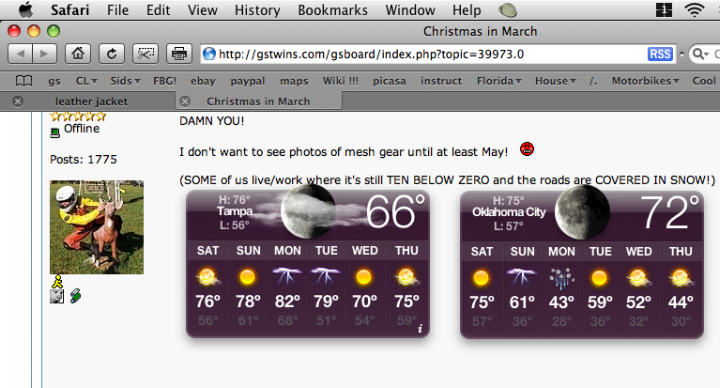 i know, how are we expected to ride when its 85 and sunny? what is this world coming to?