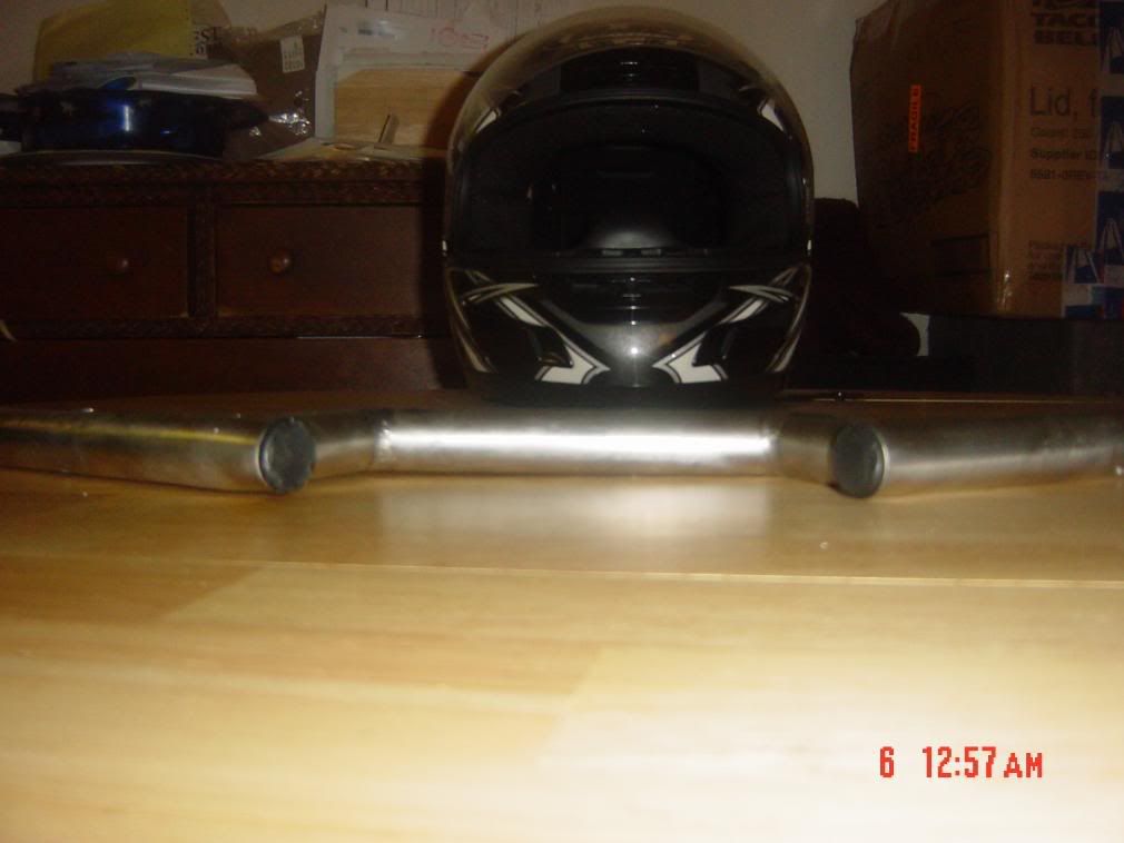 wouldnt mind em, but ive got a few things to pay for first. mainly lol an xray and that joe rocket jacket im getting, hell from that pic, htey can be straightened easily, ive not seen a front view, so i dont know whether they are tweaked in that direction as well, but even so, shouldnt be hard at all to repair