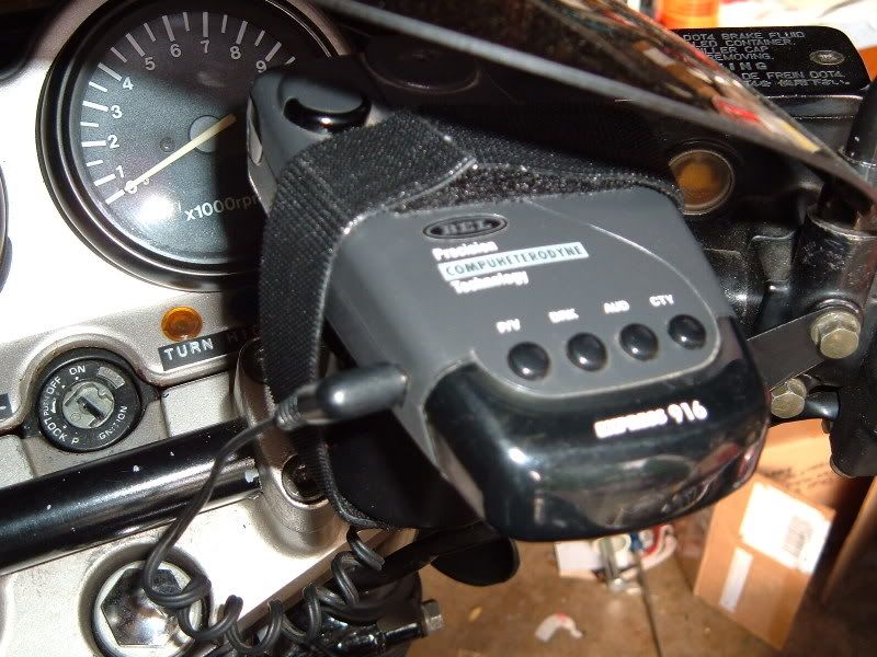 This first picture is of my Bel 916 detector mounted.It's mounted using industrial strength stick on back,velco that you can pick up at any fabric store.The last thing you need to worry about is your detector going bye-bye at 70mph! :icon_mrgreen: