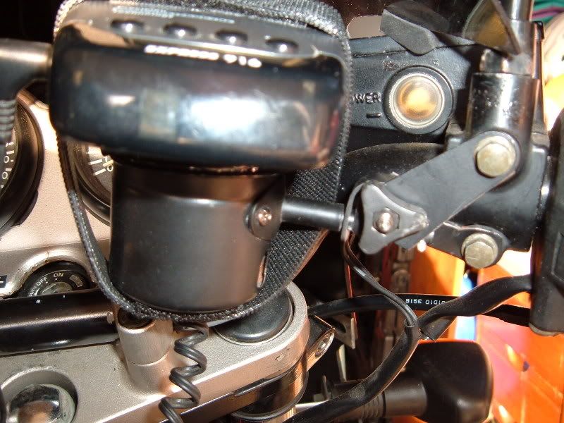 This is the lighter plug and detector plug.It is zip strapped to the brake cable.The wiring job is on Kerry's site.(Thank's Kerry) :thumb:I ran the neg wire to the back of the horn screw where it mounts to the frame..(sand it a little).