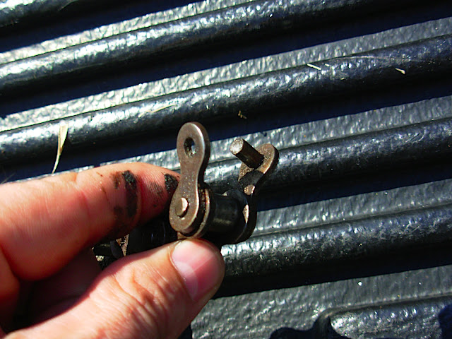 Here is what a master link looks  like on a R1 that does power up wheelies all day long. See, no magic, no special hokus pokus, no big deal. Notice the CHAIN BROKE and the master was fine.