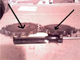 So here is the pic of the two sprockets, the one on the left is the stock 16t sprocket, the one on the right is a 14t sprocket. If you look at the stock sprocket you see it had a flange around the center of the sprocket, now the same flange is on the 14th sprocket it just has greater surface area. Both sprockets have the flange. Will this be fine?  What should I lube with grease Gi JO? Here is a pic of my machine, amd my twin turbo s80  pushing about 294hp 320 torque. The sticker with the DG=my first and last name.