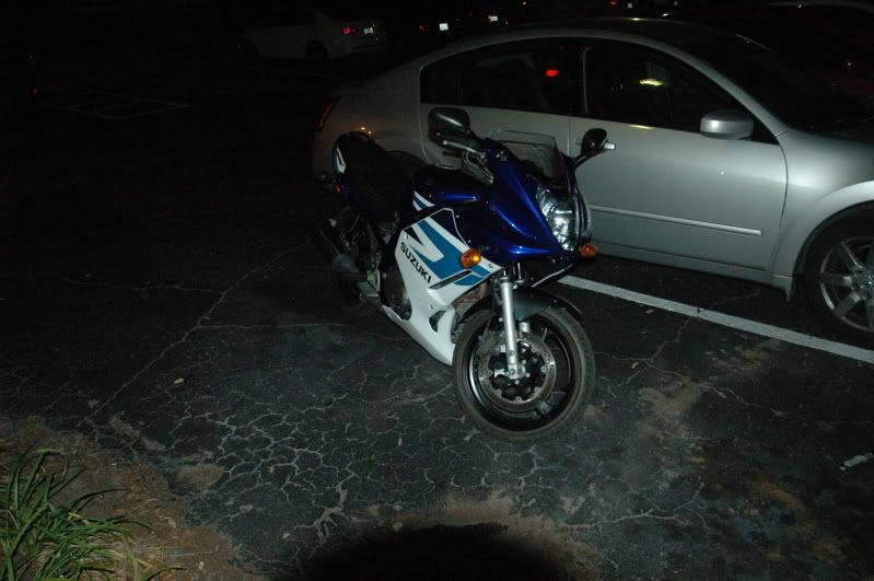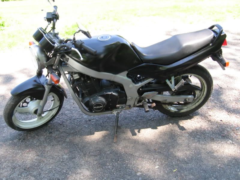 Im Justin, currently at Bloomingdale, Florida. Just got my first bike, a gs500f. Its in decent condition. Has been dropped by previous owner, handlebars are bent up, some minor scratches, turn signal out of whack (now all fixed up). She's defiantly been getting pampered. Yesterday gave her a carb sync and some new 20w fork oil. She needs new springs and a rear shock, and a front tire.