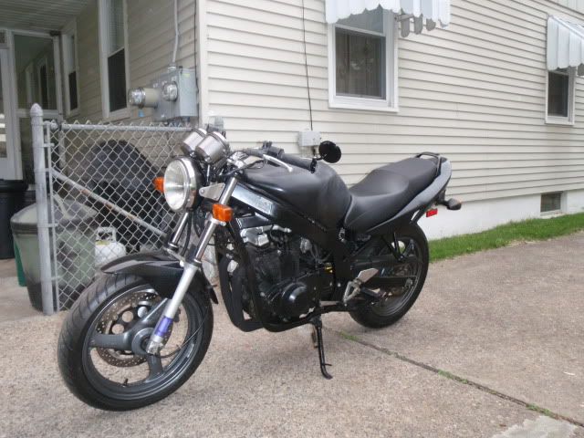 Fonzi from San Jose, CA. I'm 20 yrs old got my license a few months ago after completing the MSF course. I got myself a 92 GS500 a few days ago after the experienced riders I spoke with told me a 600RR was not a good idea for a first bike. The younger ones however told me to just jump onto a liter bike because I'd get bored of the 600RR :mad:. I have ridden a GSXR-1000 before...it was...an experience. Nothing bad happened but it's just a beast and I felt nervous on it. Anyway I picked up my GS fairly cheap I guess at $720. A few minor issues and not the prettiest bike but a weekend and some rattle cans fixed that easily.