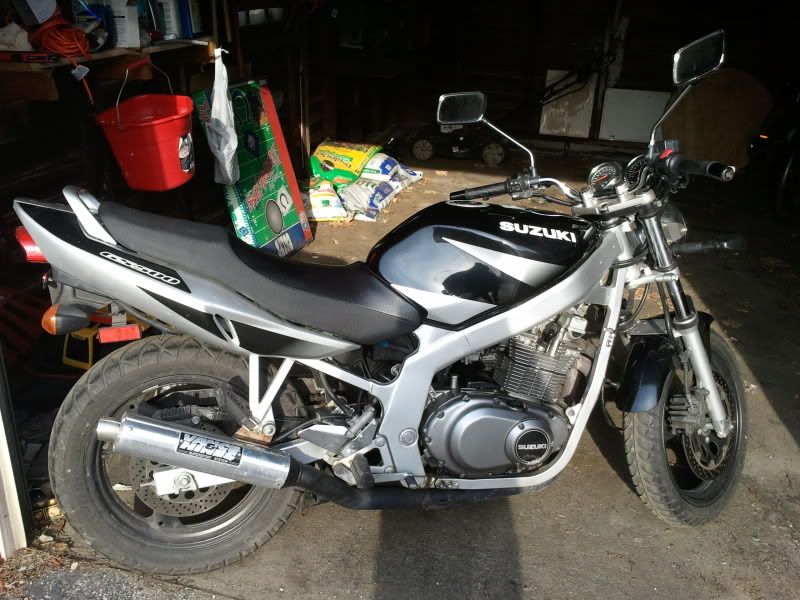 Oops, sorry...got a little side tracked... :icon_mrgreen:...welcome to the forum...the GS500 naked is an awesome bike to start with...it should keep you happy for a year or two, maybe longer if you do some mods to the bike...I'm on year two with mine...