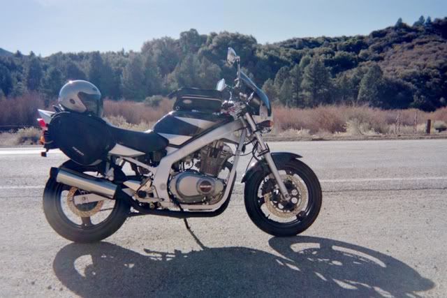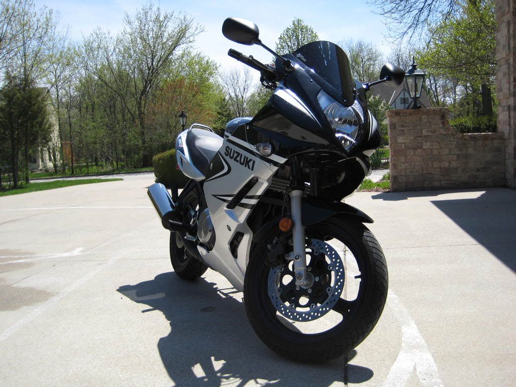 2001~ OEM Flyscreen & Chin spoiler, Fenderectomy, Sonic Springs, '05 Katana 600 Shock, Yoshimura RS-3 Carbon Fiber can, stainless midpipe, custom brake pedal, K&N Lunch box, Rejet, 14t sprocket, Diamond links, Iridium plugs, Metzeler Lasertecs, Hella horn, "CF" levers, Chuck's Fork brace. I'm broke!