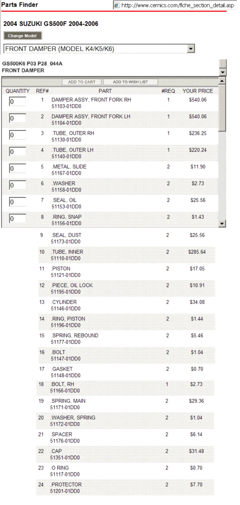 Based on the fiche, it appears that the part numbers for the 2004-2006 GS500F have changed (see below). Hope this helps!