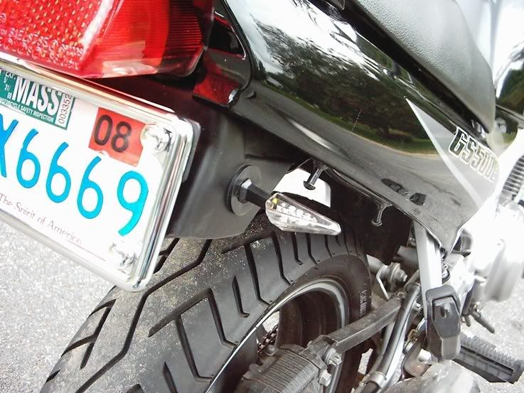 06 GS500F        flushmounts, fenderectomy, NGK plugs, painted windscreen, wheel stripes, and lots of other stuff
