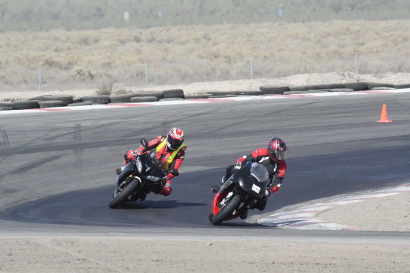 Took me a while to get used to the bike. No knee draggin this time, still getting my suspension dialed in. I had a problem with REALLY REALLY hard late braking, I kept bottoming out the front end. My F4i was an easier machine to track, Ill tell ya that right now. But man if that TL doesnt pull something fierce. Once I got the suspension setup correctly it was MUCH easier, and the learning curve was way smoother. I'm hopin to get back again next month, if employment (rather pay) allows. Here is another pic in AFM turn. My GF got better photos with some 400x zoom on her Rebel XSI slr gnar cam lol. I'll post hers up later tonight.