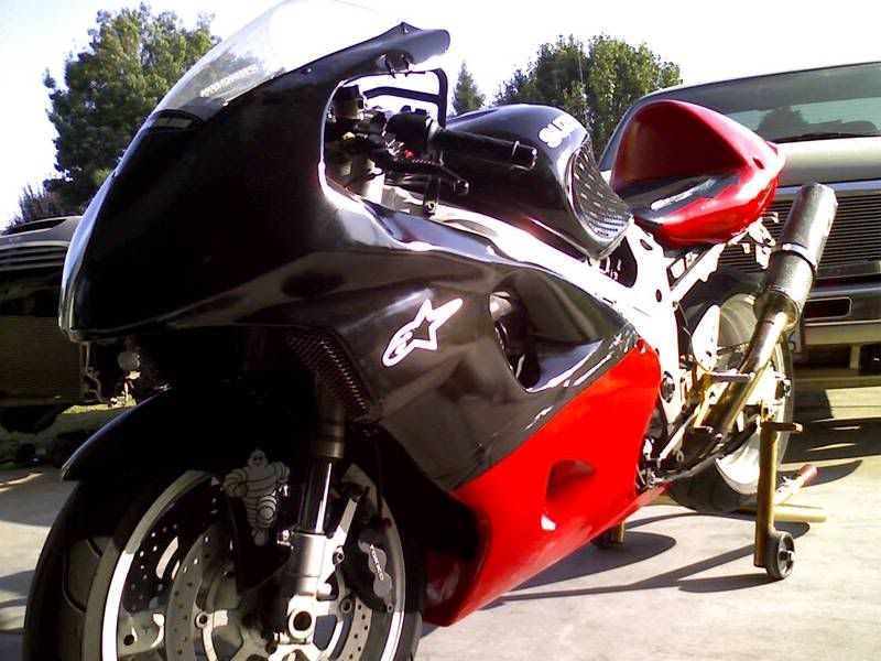 Here is a pic of my 2001 TL1000R all set for the track on the 14th (tomorrow). I'll have a couple more up in a bit, sorry its from my blackjack phone lol. What do ya'll think?