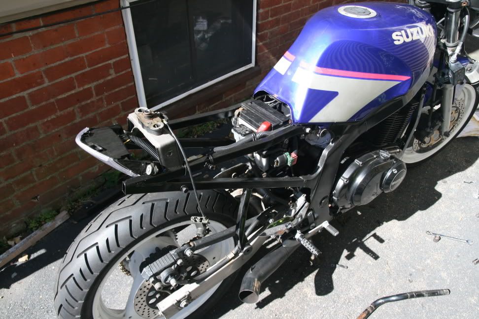 I was inspired by russomf and quiktaco's streetfighter/cafe build. my rear fairings were cracked and in kindof rough shape when i bought the bike from previous owner. I have since taken them off and sold them.