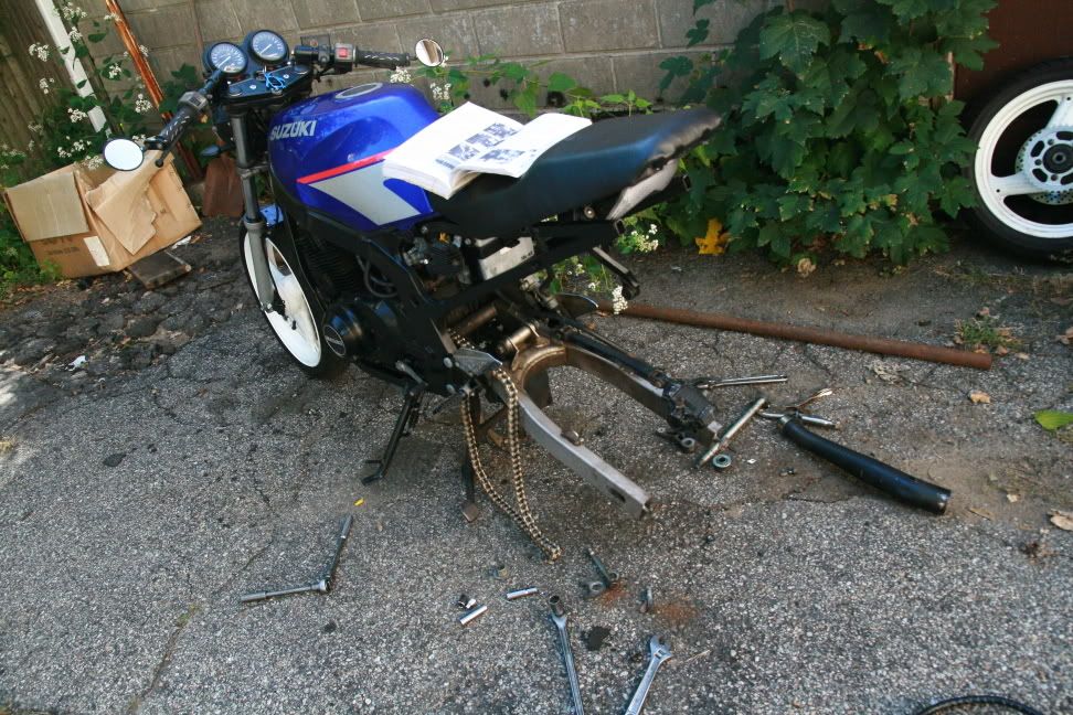 I started reading this post and was like "sweet! Another '91 GS with that paint scheme. That's the one I used to have." Then it clicked in: "Cracked plastics .... mine had a crack in the back ... woohhh ... dude ... that's my old bike." You've done something wicked there. Looks absolutely amazing. Heck of a lot better than half the CBRs cruising Thayer.