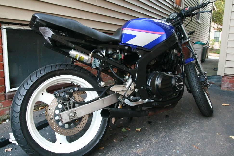 onto pictures. the bike runs great, but is still needing the pipe welded on. I have been to two shops and they say their welding machines would blast right through the thin midpipe section so modifying it would be difficult. i dunno, i really wanted to avoid spending more on a full header back. but the sound of the rs-3 is amazing and was much cheaper.