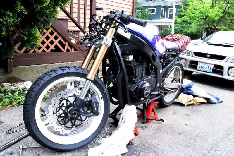 after doing all this work why didnt you change out the front forks to a gsxr or kat.. especially if you are into suspension..??