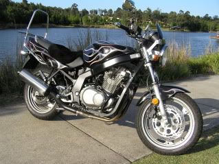 LOL I would love to do this but my dad is 4 states away and probably wouldn't go near my GS if I paid him, dudes a snob when it comes to bikes. "If it does say HD on the side its not worth riding, and why the heck did you buy a 500, you should be on at least an 883 ... blah blah blah....."-_-