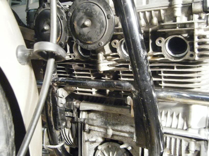 The megaphone and my newly painted/polished passenger peg bracket...please excuse the lighting, good pics will come soon