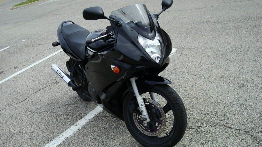 So heres my bike. It has 2800 miles and is an 05. I got it for 2400 and had to rejet it, put the exhaust on it, k&n filter, changed out the back fairings for black, fender eliminator, front windshield, clip-ons, bar grips, painted gas cap dark grey and put on CF gas and tank decals, and had to order 30+ missing screws/bolts.