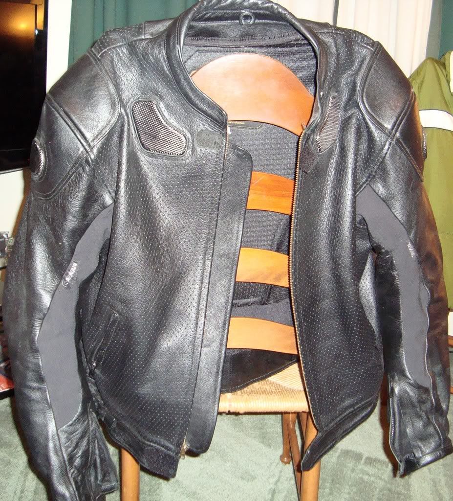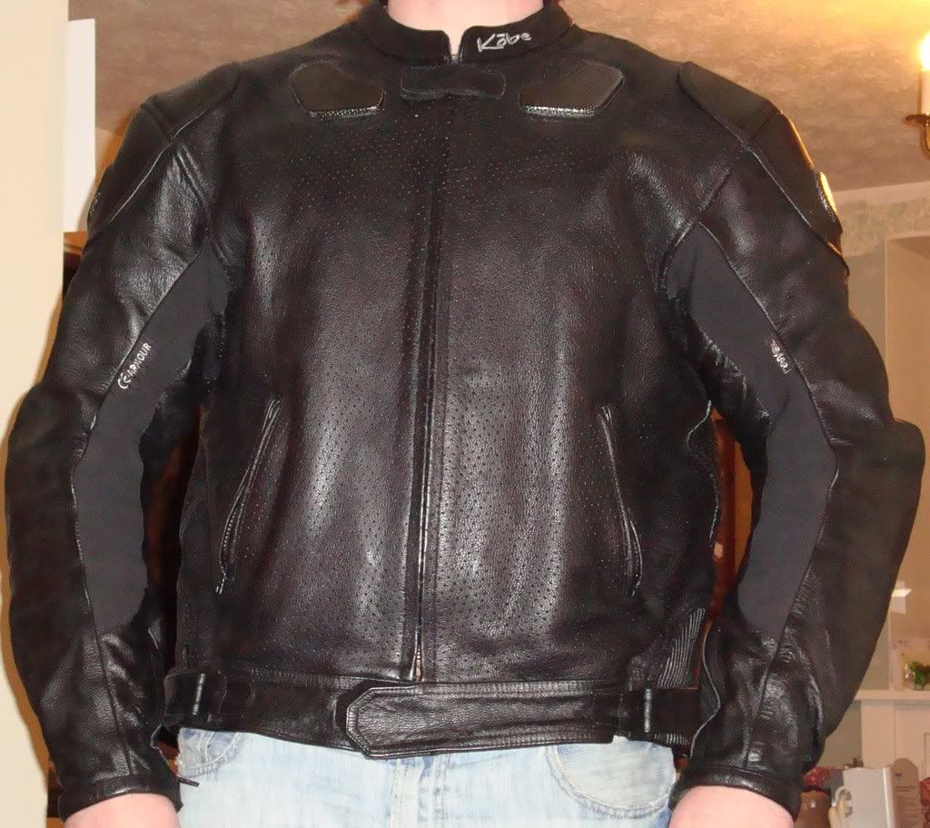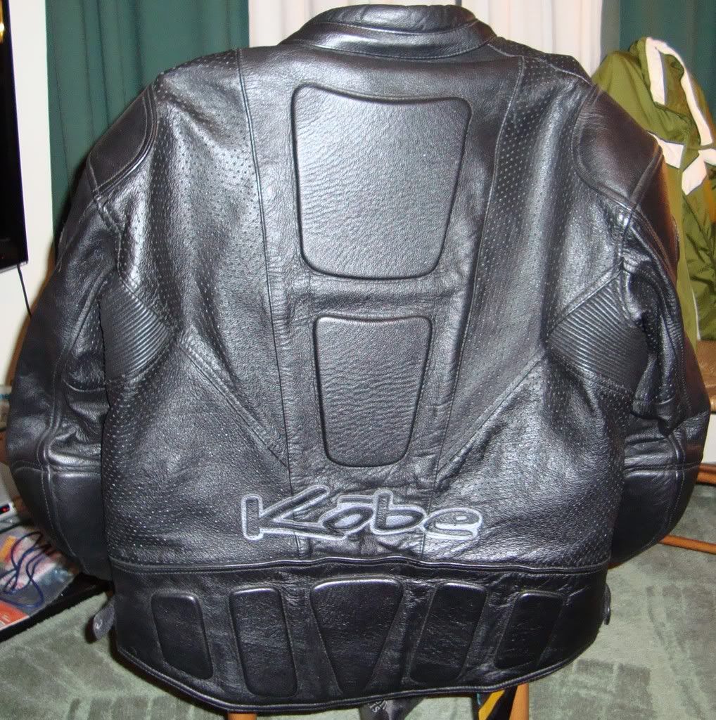 I've got a Kobe Dragon Breeze leather jacket to sell.  I've only worn it for 1 season lightly...also worn 2-3 times before I bought it.  It's a size 52 and looks brand new. A link for the info is here http://www.kobeusa.com/jackets_dragon_breeze.html.  The jacket is armored with perforated leather and kevlar stretch panels.  It also comes with a thermal liner.