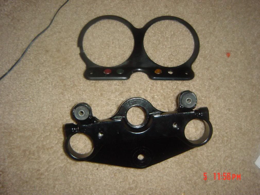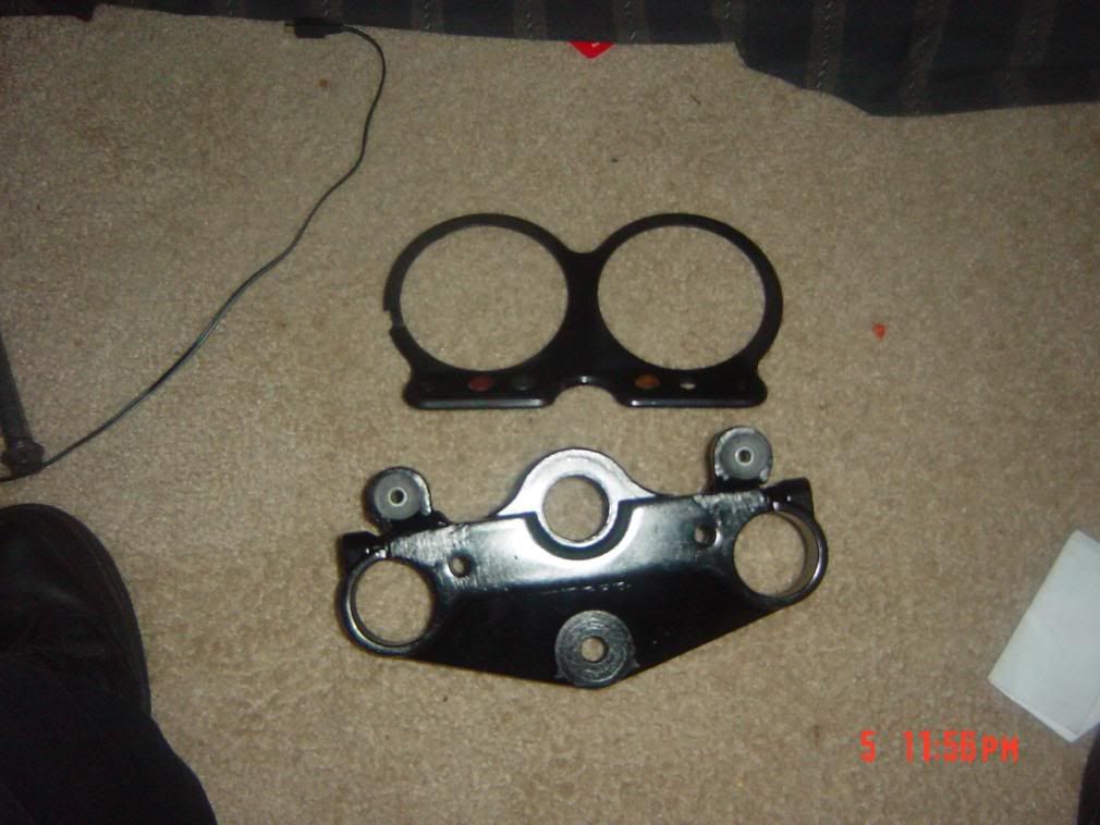 Octane's bike had a vortex top triple BTW and I believe he had GSXR 600 99-02 forks on his. I know him well, and I have a GSXR 750 I bought off him when I met him, the day werase643 crashed at VIR in 2004 and I am almost sure octane bought the triple already drilled. Otherwise we dont like to drill into our triple clamps.