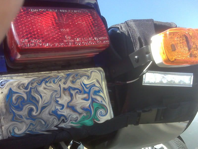 So as I was warned by multiple thread users in the angle of my LP I thought I should toss out an update. I flagged down a city cop the other day and he said that it looked just fine to him and that it's completly legal. the next day I happened to get pulled over by a state trooper on the interstate for "unsafe lane deviation" he also said that the LP was alright... So I'm thinkin its pretty good. Bought a used nelson rigg CL-450 off ebay the other day and tossed it on, its a little big for the gs(10 X 15 X 7/10) but it has the amount of space that i was really looking for. Also bolted on some "highway pegs" I used some 6" L brackets from Fleet Farm and they work great! dont look too fancy... but they get the job done, I'm thinking I might try to build my own set (that look more professional) once i get back to school. I might have to take you up on those clip-ons buddha, not sure yet though.