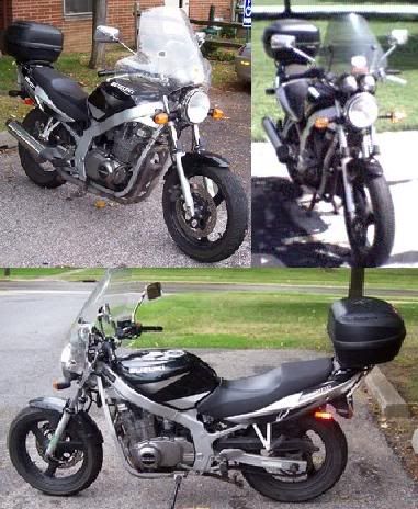 I recently added some stuff to my 2002 Suzuki GS500: National Cycle F-16 Sport Fairing Dark Tint and SHAD SH40 CA Top Case. You can view the process and comments I made on my Flickr site. Here's a direct link.