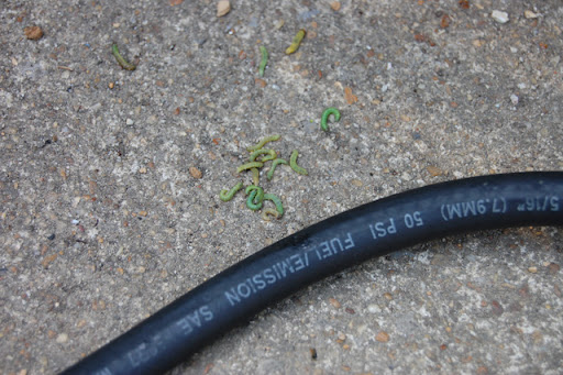 Worms. Little green worms. At least 30 of them. And mud. Packed in tight enough to kill the bike.