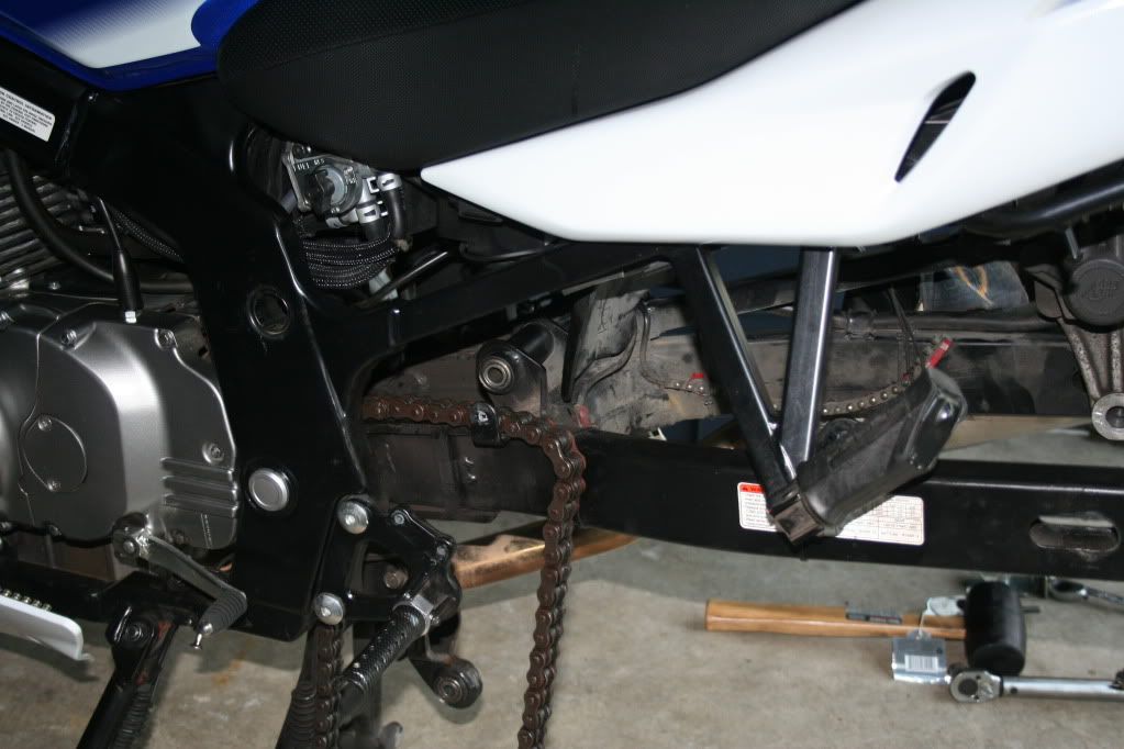 I didnt go from the top at the air filter area. I didnt want to take my time and take off the gas tank. Specially after i just filled it with gas... So I went about taking off the rear wheel since i am going to need to grind the swing arm anyway. It fits in fine.