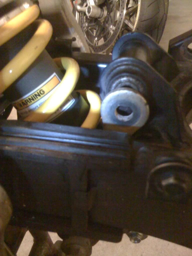 Okay SO I mounted the GSXR1000 rear shock and my swingarm, wheel and caliper for a test fitting.