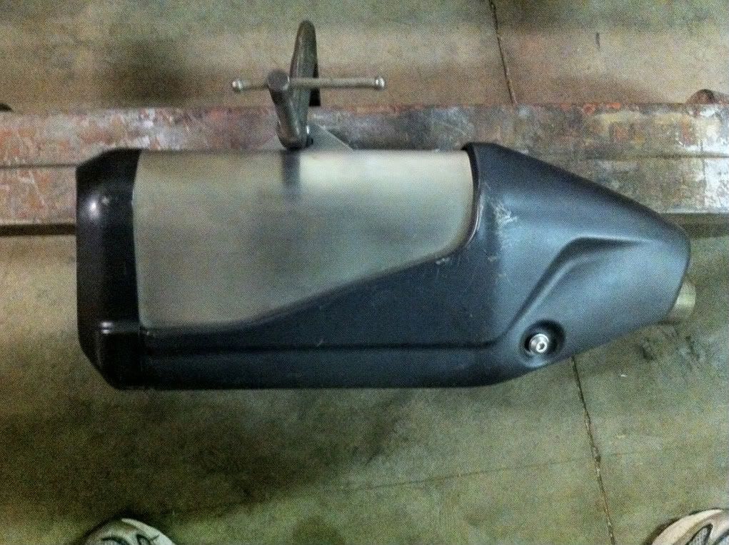Ninja 636 muffler. It's shorter and lighter than stock, yet cost $25.00 bucks.